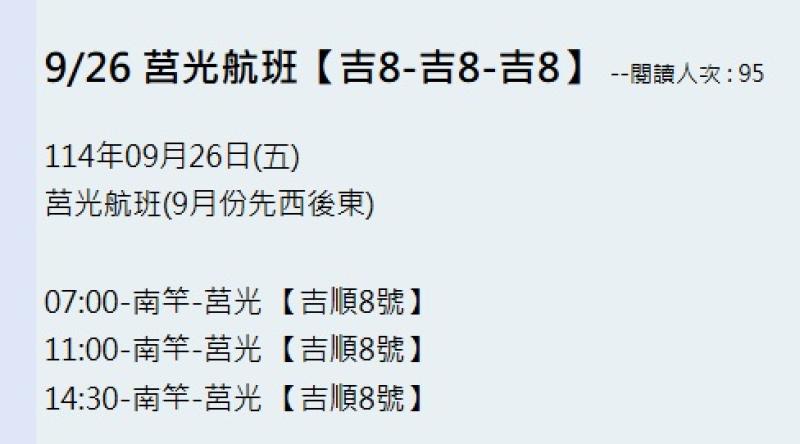 三、考量莒光輿情反應及秋冬狀態下旅客搭乘安全性,本公司刻正辦理開口契約報府作業,將於日內更換較適航替代船舶提供本航線服務。