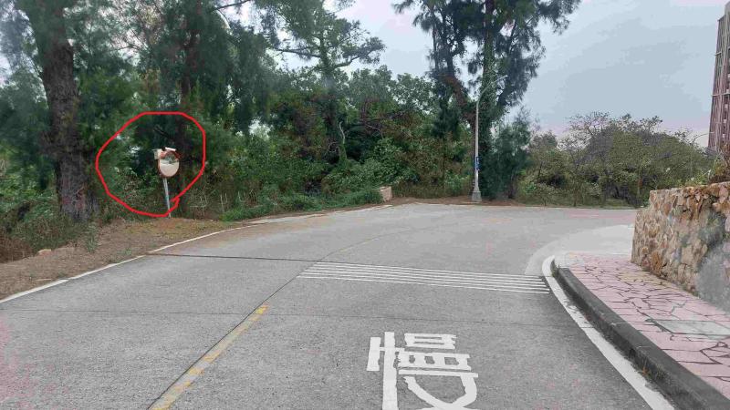 目的:請調整反光鏡角度及高度或再增設,確保交通安全。