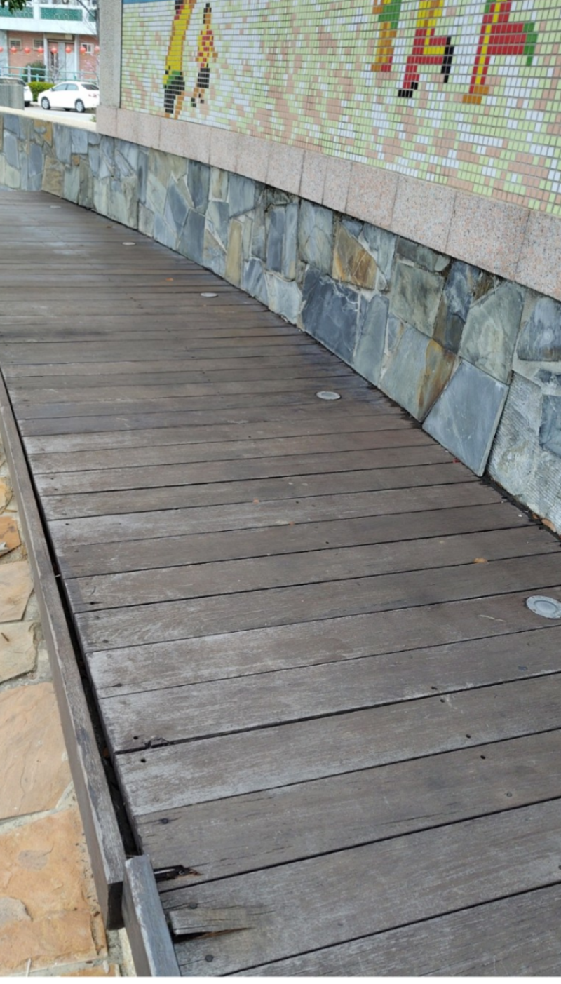 介壽澳口的白馬王公園,有一處木棧平台,已經年久失修,螺絲釘都已外露,十分危險,請權管單位儘速處理,以維民眾孩童的安全。