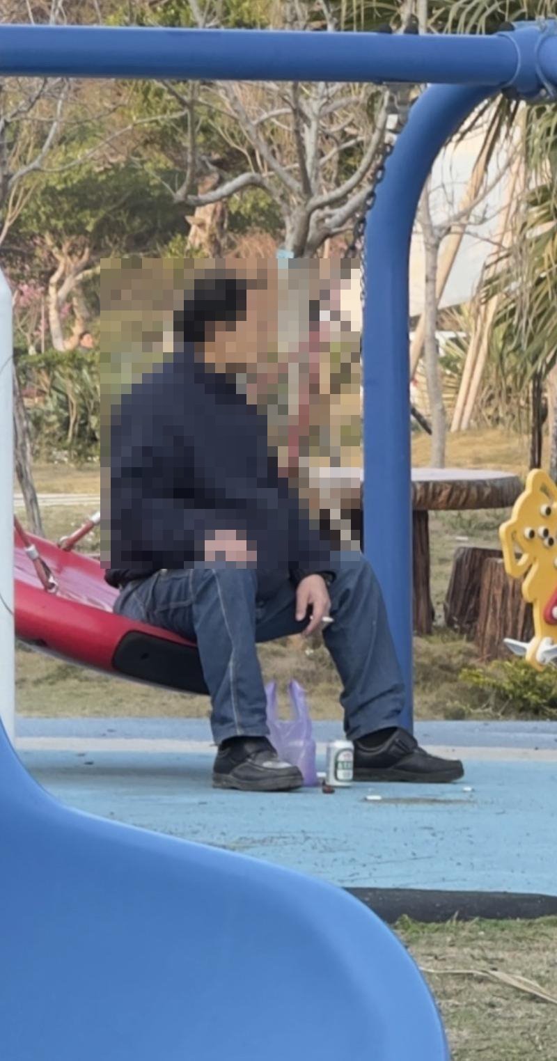 小孩在溜滑梯吸二手菸
