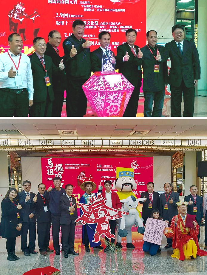 為讓國人遊客認知擺暝文化,縣府28日下午特在台北松山機場國內線大廳舉辦「2017馬祖擺暝文化祭啟動記者會」,包括連江縣長劉增應、立法委員陳雪生、議長張永江、交通部民航局副主任鄭堅中、議員陳貴忠、周瑞國、文化局長吳曉雲、北竿鄉長陳如嵐、北竿鄉白馬尊王廟及坂里天后宮主委王詩如及各大旅行社代表均與會,共同推廣冬季到馬祖體驗擺暝元宵節慶文化活動。