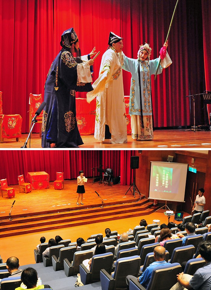 主持人新北分會專員金克威與法扶臺北兼金馬分會執行祕書謝采薇律師先後向大家說明舉辦此次活動的用意,希望能活化宣導型態,用戲曲來取代生硬的法條,一定更能讓大家印象深刻。