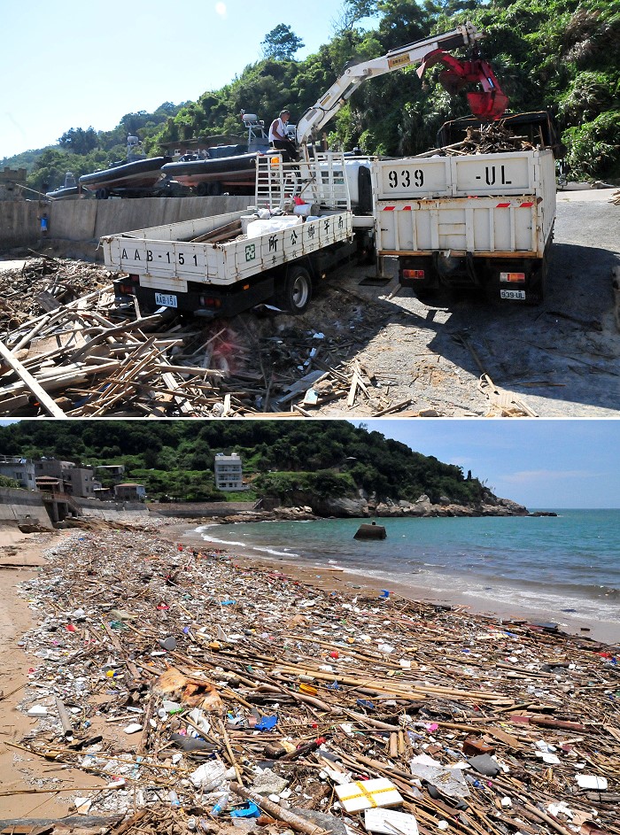 經過環保單位這幾天的密集清理,統計動員車輛載重及往返車次之後,初估垃圾部分就達308公噸,還不包括還堆放在沙灘上可回收的漂流木;其實馬祖古早年前,閩江暴雨後從海上漂來的竹子、木頭,都被島民撿取曬乾成為柴薪;而村長黃寶清也打算把這批漂流木曬乾後,作為燒塔節活動等其他用途。