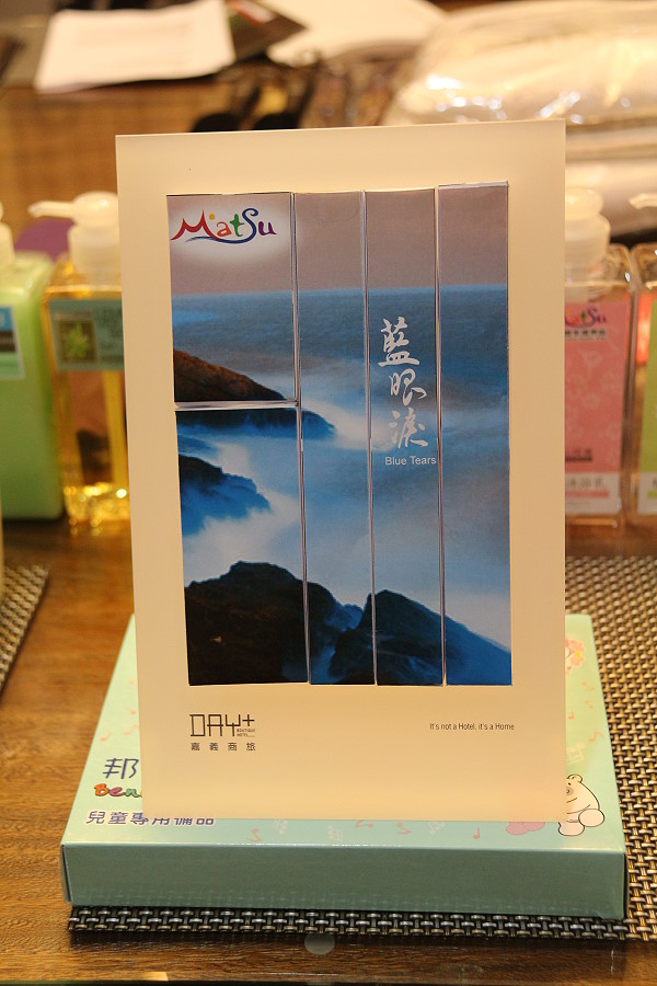 「藍眼淚」已經成為馬祖代名詞,縣府觀光局委託廠商專業設計,將「藍眼淚」結合旅館日常備品,善用包裝行銷,完美呈現精緻拼圖組合。未來若地區業者有共識,可共同採用推行,一起推廣馬祖獨有特色。