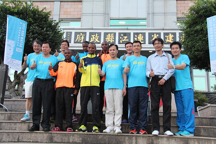 府會首長熱情歡迎肯亞選手來馬參加2015 RUN MATSU第一屆馬祖國際馬拉松。(圖/文:吳嘉榮)