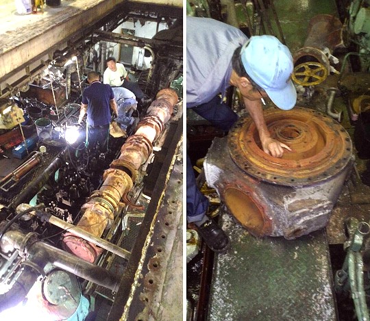 「臺馬輪」10日晚間左主機故障持續維修中,預計21日完成修復。(圖:交通局提供)
