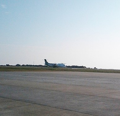 立榮70人座ATR-72型機昨成功起降南竿機場,圖為飛機滑行到跑道頭。(圖:摘自立榮馬祖站曹爾志臉書)