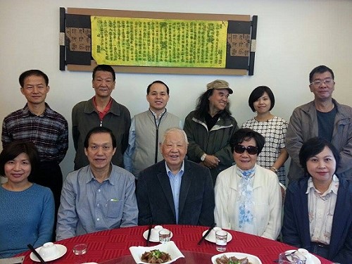 華語詩壇泰斗譽為「詩魔」洛夫伉儷(圖中)昨由金門名報導作家楊樹清(第2排右1)、名攝影師鐘永和(第2排右3)、馬祖曹依俤(左2)等友人陪同,重遊54年後馬祖。(圖:宋志富攝)