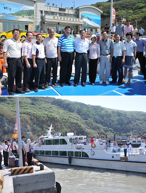 【記者陳鵬雄/北竿報導】北竿-黃岐二十五分鐘快速連結,大陸福建省交通廳副廳長馬繼列一行十多位相關官員,昨天進行黃岐-白沙航線試航,「安麒輪」 擔任試航船隻,從黃岐港到白沙港僅花了二十五分鐘。馬繼列與地區立委陳雪生及地方政府多位官員研商白沙黃岐線具體通航事宜,希望兩岸共同來加快腳步推動落實。