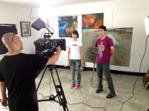 福州製作團隊拍攝音樂電視-馬祖《藍眼淚》MV,男女主角從一幅畫邂逅而緣起。(圖/本報馬祖故事館曹以鋒攝)