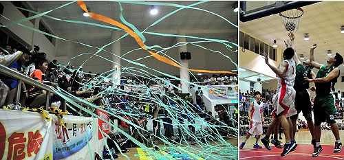 第10屆「健康上籃」精彩決戰夜!兩隊都是體型高大,籃下競爭分外激烈,結果由龍福三協首次參賽就拿下冠軍,全場觀眾都拋出彩帶為他們的精彩表現掌聲鼓勵。(圖/文:曹重偉)