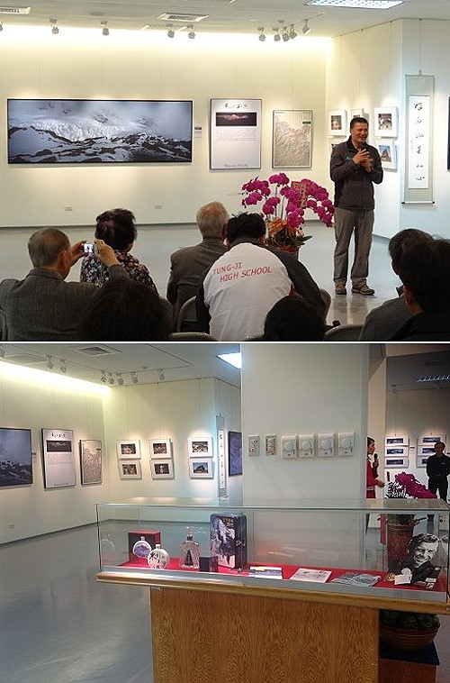 此嘉義梅嶺美術館的展覽也是為他後續的各起登山行程籌款,已於2月26日展出,展期至3月17日止,昨天舉行開幕儀式,台灣與馬祖各界朋友及贊助商前往參與。