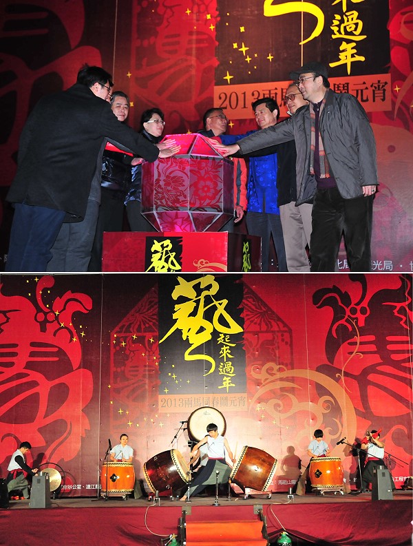 兩馬鬧元宵國際鼓藝晚會盛大登場,縣長楊綏生與馬尾副區長張林等來賓共同為主題燈、同心源燈廊及縣府大樓光影秀點燈,主秀十鼓擊樂團的演出也是震撼人心!(圖/文:曹重偉)