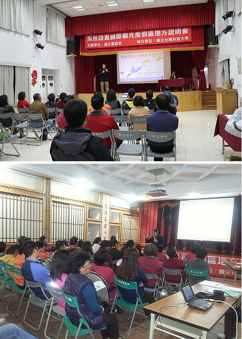 縣府觀光局巡迴四鄉五島舉辦「馬祖設置國際觀光度假區」說明會,由台灣科技大學財務金融研究所教授劉代洋主持,劉教授擁有25年博彩研究經驗,也同時為台灣彩券及博彩研究中心主任;說明會除吸引鄉親到場,縣長楊綏生、鄉長柯玉官、村長王秀金、鄉代林宏豫等均出席現場。