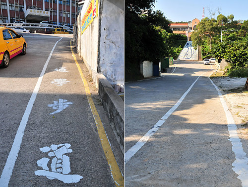 【記者曹重偉/南竿報導】照過來!介壽國中小學生們現在上課有專屬的「通學步道」了;此工程是由縣府於8月間施工,目前已完成施作,校長陳書安對此表示歡迎,提醒從該路段走路上學的學子要注意安全,也請駕駛朋友高抬貴手,遵守交通及行駛方向。