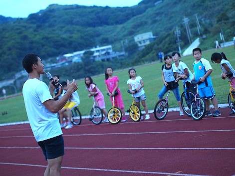 【記者陳其敏/東引報導】東引國中小獨輪車隊,自開學後就積極展開訓練,準備在縣運開幕典禮中大顯身手。獨輪車專家「倒立先生」黃明正,心繫大小朋友們的訓練成果及心理狀況,日昨還專程到東引進行指導,並激勵同學們專注練習,堅持到底追求完美,才能贏得眾人的掌聲與喝采。
