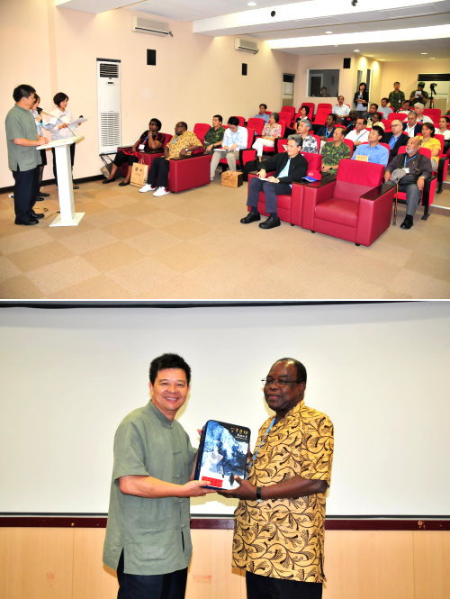 而大使團由團長布吉納法索大使沙瓦多哥代表發言,感謝外交部的細心安排及縣府團隊的熱情歡迎,而他前幾年本來打算要來,結果居然因天候因素關場停飛,所以此次知道要來馬祖,他是特別禱告好幾天,希望此次能夠順利成行,好在禱告有效順利來到馬祖,感到非常高興,而團員們大多數都是第一次來,感謝楊縣長的詳細介紹及精彩的影片簡介,發現馬祖真的非常美麗,也特別感謝柯次長的安排及陪同,讓大使們能夠好好體驗台灣及馬祖各地的好山好水。柯森耀也致詞肯定楊縣長的說明及縣府的安排,相信在楊縣長的率領之下,馬祖一定能夠成為聞名中外的觀光勝地。