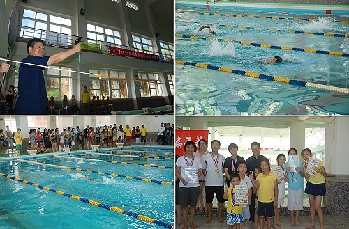【記者邱竟瑋/南竿報導】101年度縣長盃分齡游泳錦標賽昨天登場,四鄉五島選手昨天齊聚珠螺游泳池,爭取最後勝利。今年共有7位選手囊括雙料冠軍,分別是張雨曈、宋有峰、宋有堂、陳雲松、蔡政宏、陳德駿與蘇莉華。多組選手也跨齡參賽,擠進前三名。縣長楊綏生到場鳴槍,鼓勵軍民多多運動,既有趣又可以強健身心。
