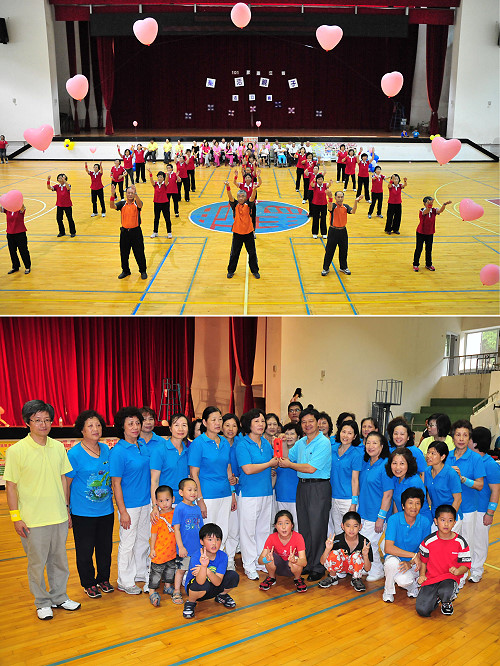 「101樂活親子活力賽」歡樂登場,隊員們不分男女老少同場競技;馬港社區發展協會以整齊劃一表現,拿下最憑本事的健康操競賽,並列冠軍的介壽婦女隊大方將獎金捐出給大同之家。(圖/文:曹重偉)
