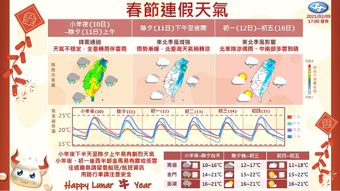 今起鋒面通過 下半天至除夕上午天氣將轉不穩定