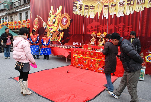 筊杯祈福發財金活動,昨天吸引不少鄉親前往一試手氣,期盼發財母金為自己帶來更多的財運。(圖/文:劉秋月)