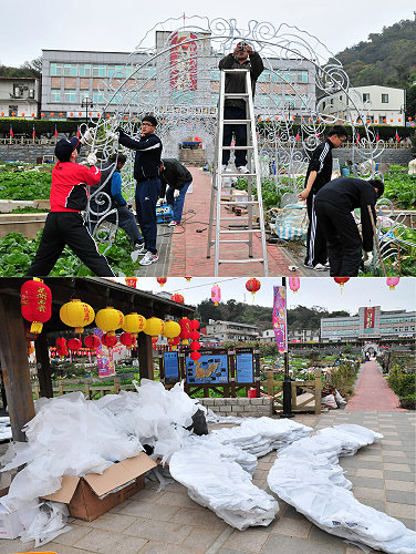 元宵燈會主場地介壽村展開佈置 蔬菜公園通道架設「大型燈廊」,精彩可期