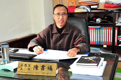 陳書福主任為地區資深主管之一,從民國68年返鄉在農改場服務,83年轉至建設局工商課,90年一度外調到馬管處,95年回任縣府,後於96年接掌企劃室至今,歷時32年豐富的行政資歷,對於各類行政工作的開始至完成的各個程序,都是相當的熟稔,也是他被倚重擔任此職務的因素。