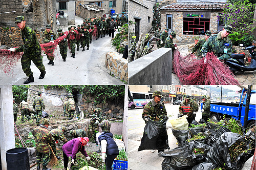 此次活動軍方也是大力配合,各村都動員兵力協助清理工作,砲三營支援介壽村、步二營馳援復興村、港運營固守福澳村,全力配合村長指揮調度,並由環保官四處巡視督導,秩序相當良好,指揮官任季男也前往慰勉官兵。