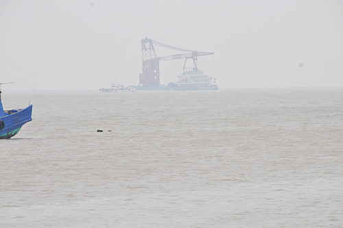 中國籍平台作業船「蘇聯海捌號」進入塘岐馬鼻灣海域避風,為免影響機場飛安,被要求駛往它處避風。(圖/文:陳鵬雄)