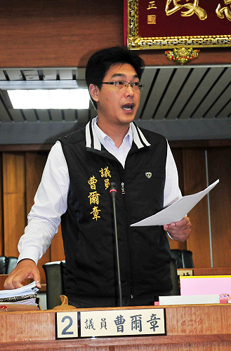 議員曹爾章進行質詢。(圖/文:曹重偉)