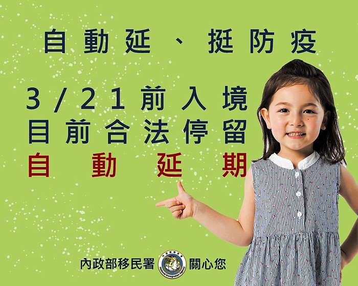 服務站表示,移民署方面是為避免國際人流移動,造成之防疫破口及降低社區防疫負荷,針對合法停留超過180日之外國人,前於7月17日、8月14日、9月14日、10月15日、11月13日及12月14日6度宣布自動延長30日停留期限之措施,此次為第7次。