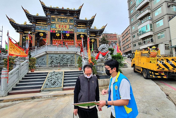 國內疫情上升,指揮中心配合推動春節期間宗教場所宗教集會活動防疫措施, 24日派員前往各廟宇實地關心各項防疫措施執行狀況。(圖/文:曹重偉)