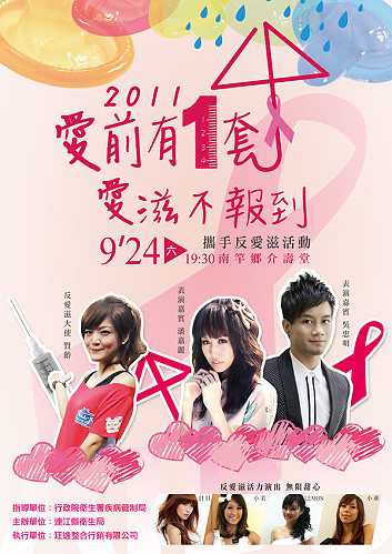 【本報訊】連江縣衛生局「愛前有一套、愛滋不報到」宣導活動24日(週六)晚間19:30介壽堂登場,邀請星光幫吳忠明及女歌手潘嘉麗等人演出,還有反愛滋大使賢齡及反愛滋活力演出無限甜心-貝貝、小若、lemon、小乖等;活動當日備有精美宣導品1份,限量500份,送完為止。