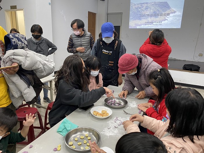 馬祖國際藝術島《迴島嶼吧》,1日晚間在東莒老人活動中心展開廚藝體驗,邀請「餐桌上的島」主廚吳謝私廚教學,使用在地蕃薯,在廚藝體驗課中自己手做造型像算盤珠子的麵食料理,最後再將大夥捏製出的麵疙瘩加入事前熬出的番茄時蔬鱸魚高湯中,在難得寒冷的夜晚中給現場鄉親暖胃,鮮美味道大夥讚不絕口。