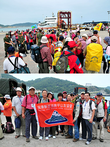 前(1日)晚間第一批登山社團山友基隆登船,昨上午到東引,部分先下東引並進住,部分轉到南竿,並有一百多人轉往莒光參訪;在空運部分昨一整天班機有355人搭機陸續到馬祖,接待組昨天也忙著接待。昨晚臺馬輪將再載325人、軍租船合富輪載116人,今(3日)早上到馬祖。