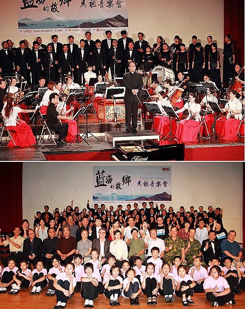 由連江縣政府與國家國樂團合辦,台北愛樂文教基金會承辦的「藍海的故鄉-馬祖音樂會」。昨天晚間,鄉親在用完晚餐後,相約而去,體育館內外人聲鼎沸,北竿鄉親搭兩艘客輪到南竿。縣長楊綏生開場感謝演出人員辛勞,以及各界共襄盛會,立委曹爾忠、議長陳貴忠、指揮官任季男、議員等,以及參加馬祖國際和平論壇學者專家參與,現場觀眾也都專心聆聽及欣賞。