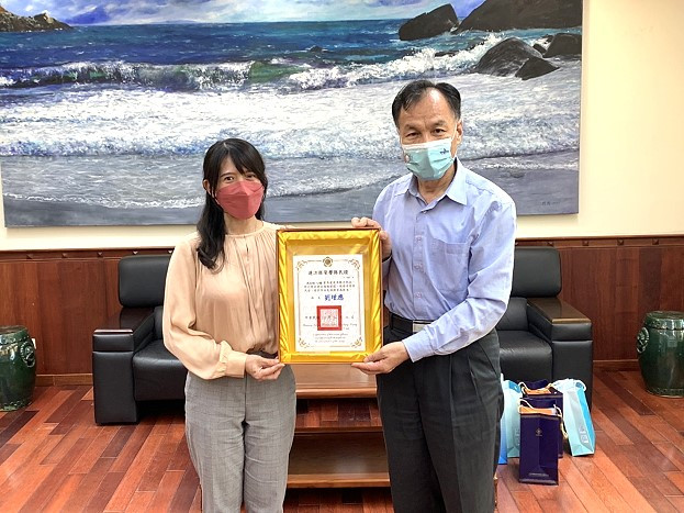 馬祖氣象站主任尤心瑜調台,縣長劉增應致贈榮譽縣民證。(圖/文:馮紹夫)