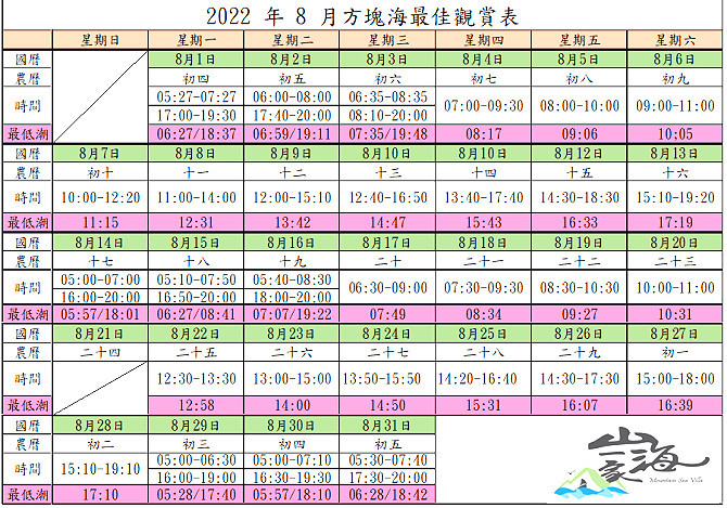 圖表/西莒方塊海8月最佳觀賞時刻表
