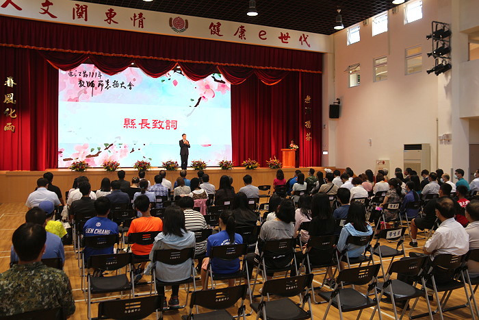 連江縣111年教師節表揚大會9月30日下午4時於介壽國中小禮堂舉行,表彰老師對於教育的付出和貢獻。縣長劉增應、議長張永江、議員陳書建、縣府一級主管、馬防部政戰副主任林秉鴻、南竿鄉長陳振國、莒光鄉長謝春欗及各校校長皆出席參與,共同歡慶教師節。