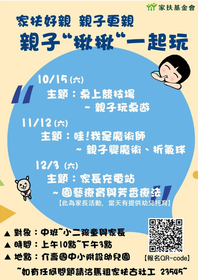 馬祖家扶15日、11月12日、12月3日親子揪揪一起玩活動 報名
