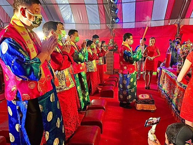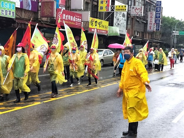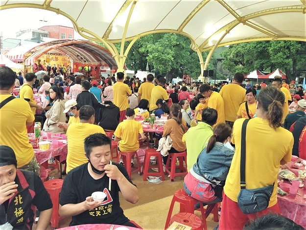 2022桃園媽祖昇天祭熱鬧登場,市長鄭文燦擔任主祭官,迎神八德閩臺宮出發,陣頭隊伍冒雨沿路浩浩蕩蕩至八德區藝文廣場會場,以及食福宴席開百桌。(圖:八德區公所、桃園市馬祖同鄉會提供)