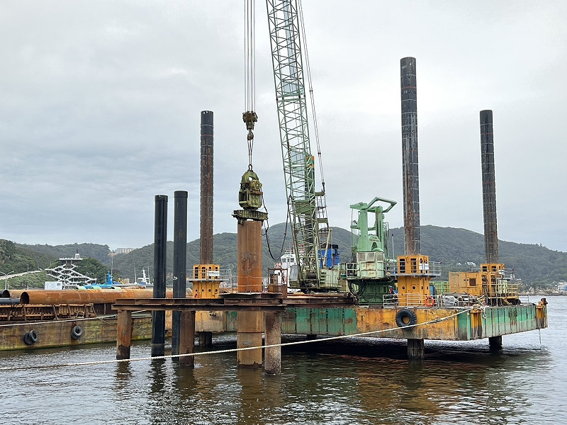 福澳碼頭新設F3浮動碼頭鋼管樁欉打設,工程施工預定到7月15日,施工期間請往來航行船隻多加注意安全,廠商表示造成不便敬請見諒。