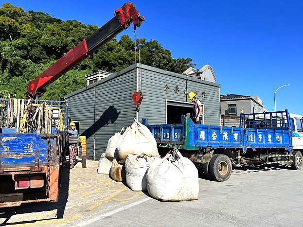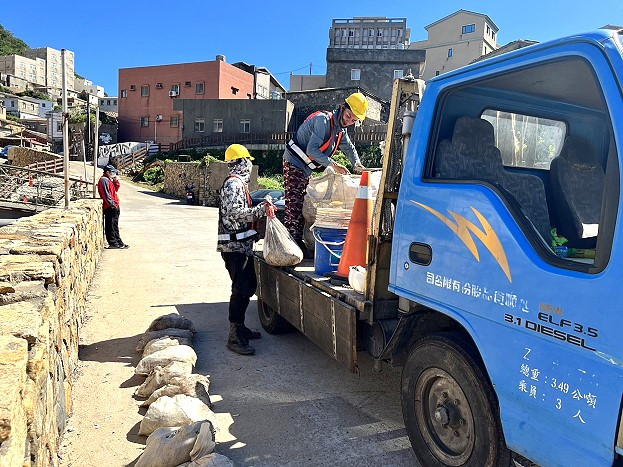 因應梅雨季節及颱風汛期,環資局29日辦理今年防汛演練,包括排水系統緊急疏通、防汛砂包緊急佈設等項目,有效且迅速完成任務。(圖:連江縣環資局)
