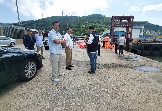 臺灣港務港勤公司人員25日下午飛抵馬祖,隨即向連江縣政府、交旅局、港務處解釋事件發生經過,並敘明後續潛水夫探測、拖駁船打撈及油污處置等情形。