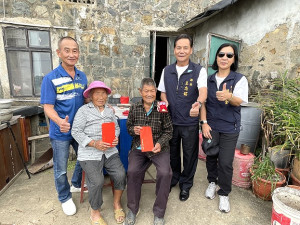 九九重陽老人節,為表達對長者的敬意和謝意,縣長王忠銘19日下午在衛福局局長陳美金、北竿鄉長吳金平等人陪同下走訪北竿各村發放112年敬老金,鄉內65歲以上老人家都可以領到1千5百元至1萬元不等的敬老金。