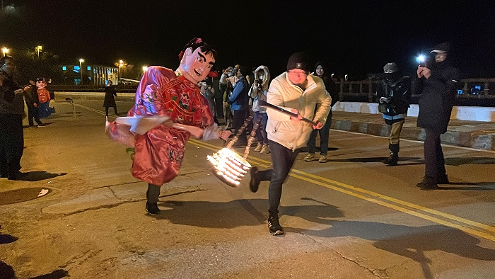 莒光獨有擺暝活動餘興節目-「跑火賽」第2場熱鬧登場,讓遊客軍民度過不一樣的夜晚。(圖/文:宋幸儒)
