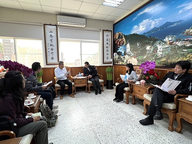 中央氣象署海氣遙測組副組長張保亮、科長尤心瑜,在馬祖氣象站曾浩然主任等人陪同下,21日下午拜會縣長王忠銘,針對馬祖雷達站建置說明規劃。