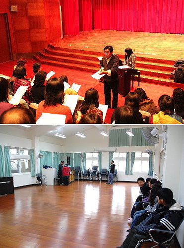 馬祖兒童合唱團報名踴躍,學生教室內外排隊等候徵選;下午連江雅韻合唱團新增十一名團員,指導老師杜明遠立即展開第一堂課的練習。(圖/文:劉秋月)
