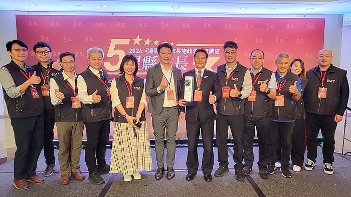 《遠見》雜誌6日下午舉行2024縣市長施政滿意度調查五星縣市長贈獎典禮,縣長王忠銘蟬聯五星首長,連江縣在團隊總績效的八大面向平均滿意度表現出色,有五個面向全台第一,彰顯了縣府團隊的卓越成效和領導能力,因此,王忠銘特別帶領縣府團隊的局處首長和年輕主管一同來到現場,與團隊共同分享榮耀。
