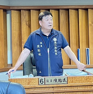 今年夏季航班一反常態減少,陳貽斌反映民意,以旺季減班、馬高航線進度等議題向縣長王忠銘提出質詢。